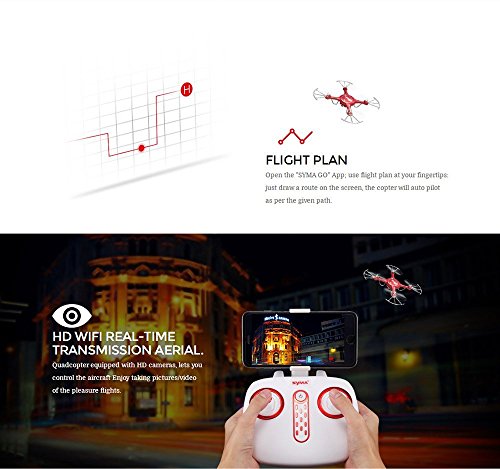 Syma X5UW New Version Features: Barometer Set Height: After using the left joystick (Accelerator) to control the ascending/ descending flight of the aircraft, let go of the left joystick(Accelerator) and the aircraft will still hover at that height a...